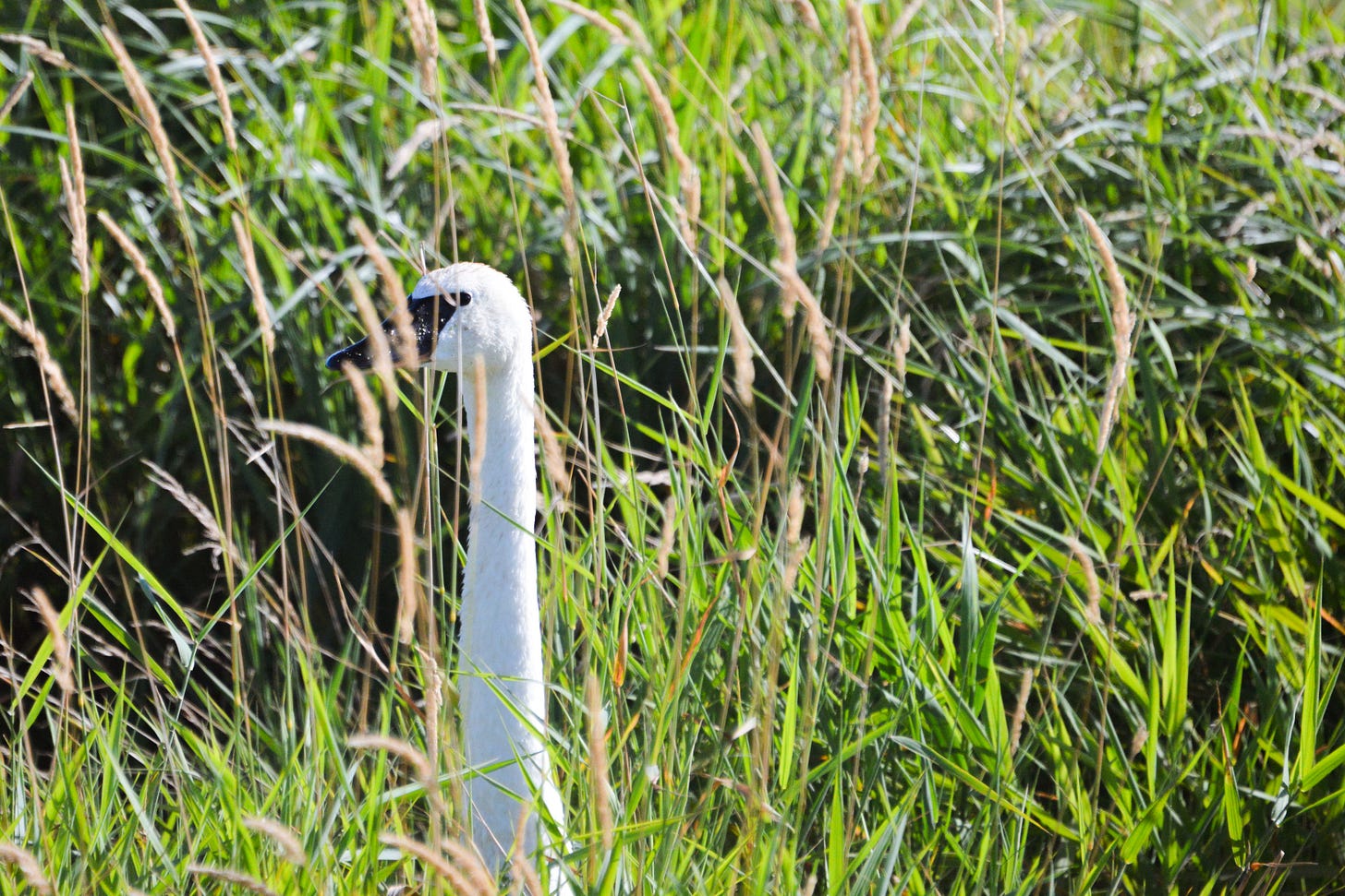 Being almost half neck, Trumpeter Swans convey a variety of messages with a neck gesture: “Bobbing Display (with elaborations) forms the basis for much communication among Trumpeters,” according to Lumsden. Along with vocalizations, posture and movement, and “marking time,” head bobbing is one of the four standard components of Trumpeter Swan behavior.