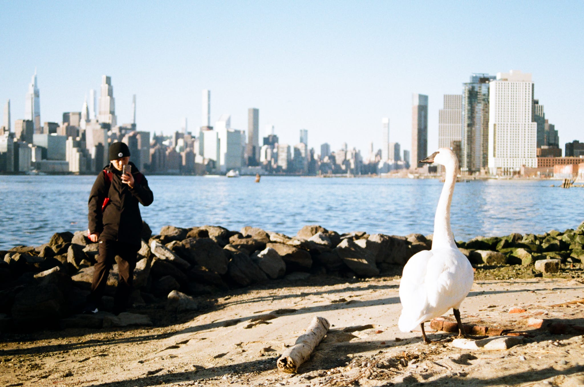 Here’s what we can say for sure about this swan: It’s majestic, it doesn’t mind the crowds, and it can fend for itself (with the help of its interspecies companion). I even saw it tentatively picking at some algae on the walls of the Wallabout Channel.